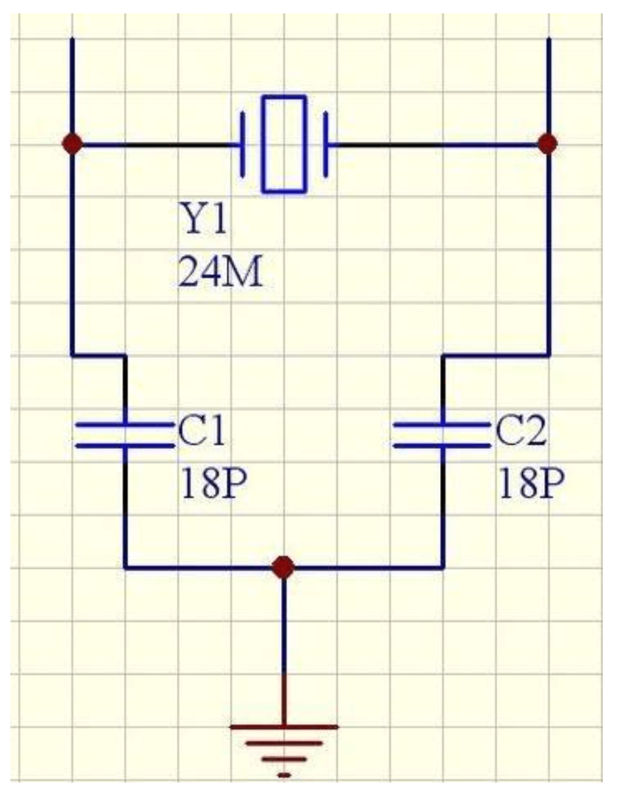 圖中C1,C2這兩個(gè)電容就叫晶振的負(fù)載電容,分別接在晶振的兩個(gè)腳上和對(duì)地的電容,一般在幾十皮法。它會(huì)影響到晶振的諧振頻率和輸出幅度,一般訂購(gòu)晶振時(shí)候供貨方會(huì)問(wèn)你負(fù)載電容是多少。晶振的負(fù)載電容=[(Cd*Cg)/(Cd+Cg)]+Cic+△C式中Cd,Cg為分別接在晶振的兩個(gè)腳上和對(duì)地的電容,Cic(集成電路內(nèi)部電容)+△C(PCB上電容)經(jīng)驗(yàn)值為3至5pf。因此,晶振的數(shù)據(jù)表中規(guī)定12pf的有效負(fù)載電容要求在每個(gè)引腳XIN與XOUT上具有22pf(2*12pf=24pf=22pf2pf寄生電容,定值貼片電容沒(méi)有24pf,據(jù)表中規(guī)定12pf的有效負(fù)載電容要求在每個(gè)引腳XIN與XOUT上具有22pf(2*12pf=24pf=22pf2pf寄生電容,定值貼片電容沒(méi)有24pf。 只有22pf)。兩邊電容為Cg,Cd,負(fù)載電容為CI, cl=cg*cd/(cg+cd)+a,a=Cic+△C(a的經(jīng)驗(yàn)值是3.5-13.5pf)就是說(shuō)負(fù)載電容15pf的話,兩邊兩個(gè)接27pf(定值貼片電容只有27pf,沒(méi)有30pf)的差不多了。